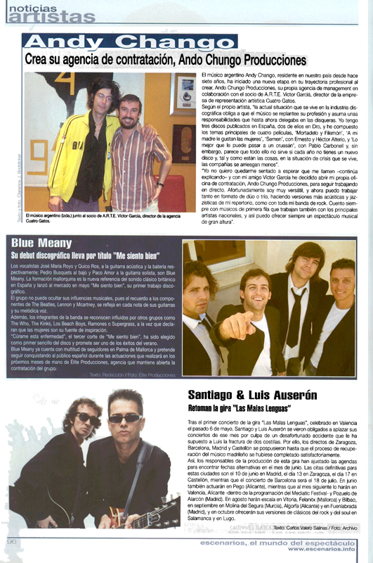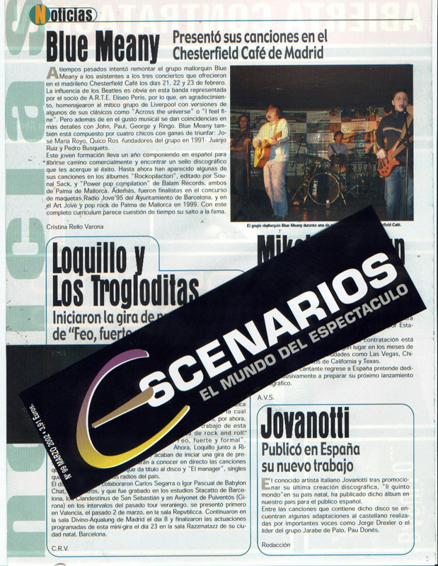Algunos recortes de revistas o webs que han dedicado un espacio a Blue Meany podemos encontrar revistas tan importantes como Bilborock y Escenarios.